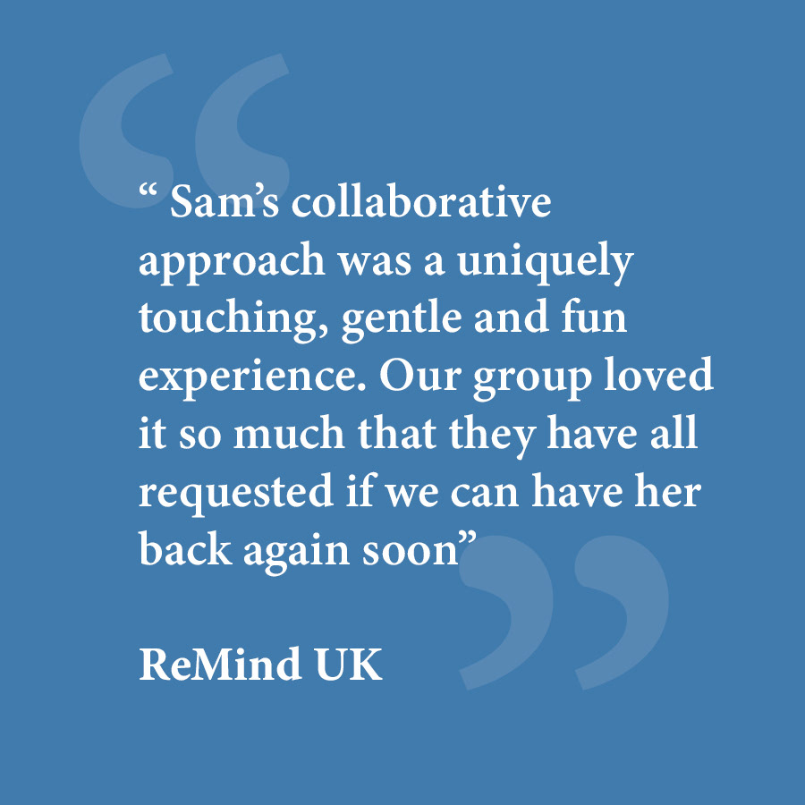 I run open sessions, which anyone can attend, and accept commissions from organisations. My clients include Age UK, Beyond Dementia, ReMind UK, Alive Activities and the National Trust, along with care homes and local community groups.