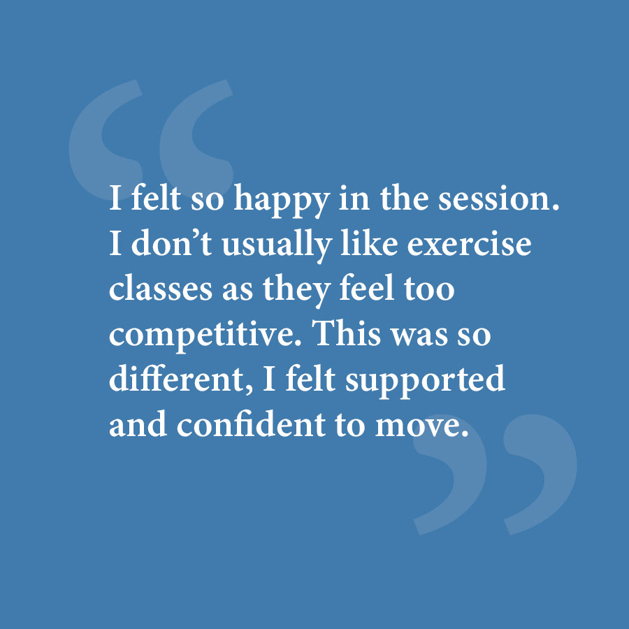 Sessions are run on a collaborative basis, with the group contributing to the moves and the music choice. All the dancing is designed to be accessible, everyone can enjoy moving either seated or standing, depending on their range of movement.